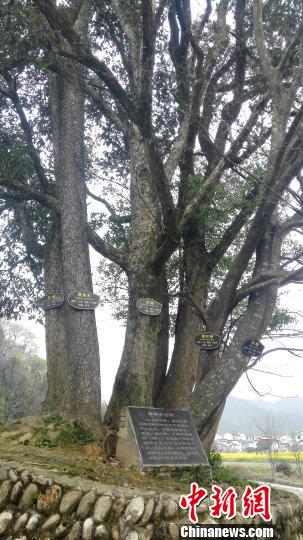 江西婺源赋春镇现6棵5种不同的树同时从一棵死去的千年古樟兜中生发出,当地取名为中华六合树。 苏路程 摄