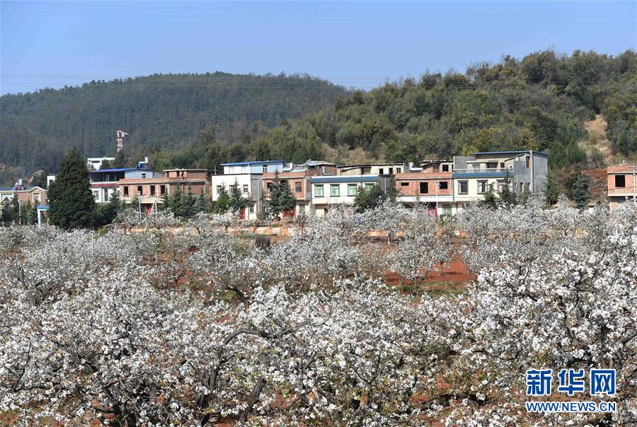 昆明市高新区一丘田秋木箐宝珠梨庄园梨花盛开(3月21日摄)。近日,云南省昆明市高新区一丘田秋木箐宝珠梨庄园万株梨花盛开,吸引人们前来踏青赏花、观赏美丽乡村景色。 新华社记者杨宗友摄