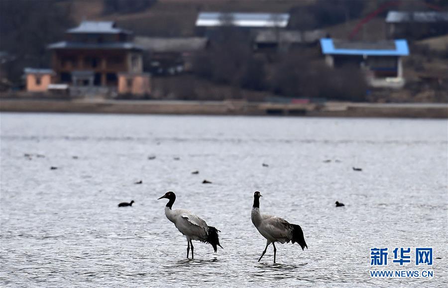 3月21日,一些黑颈鹤在云南香格里拉纳帕海自然保护区自由栖息。近年来,随着高原湿地的恢复与保护,在海拔3300米左右的云南省迪庆藏族自治州香格里拉市纳帕海自然保护区,每年前来越冬的黑颈鹤的数量从几年前的200多只增加到目前的400只左右。黑颈鹤是国家一级保护动物,属高原特有鹤类,主要分布在西藏、贵州、青海、四川、云南等地。目前每年来到纳帕海越冬的各类候鸟已达12万只左右。新华社记者 蔺以光 摄