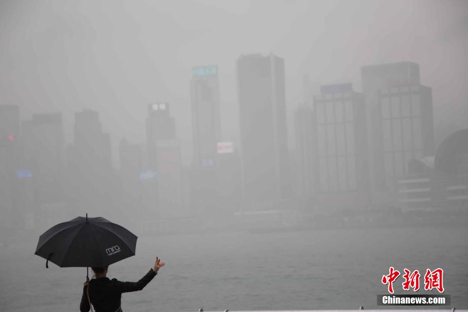 3月23日,香港大雾,维港两岸烟雨蒙蒙,游客在欣赏雾锁香江景色。香港天文台预测,受到冷空气影响,香港周末市区最低气温会下降至十一度。中新社记者 洪少葵 摄