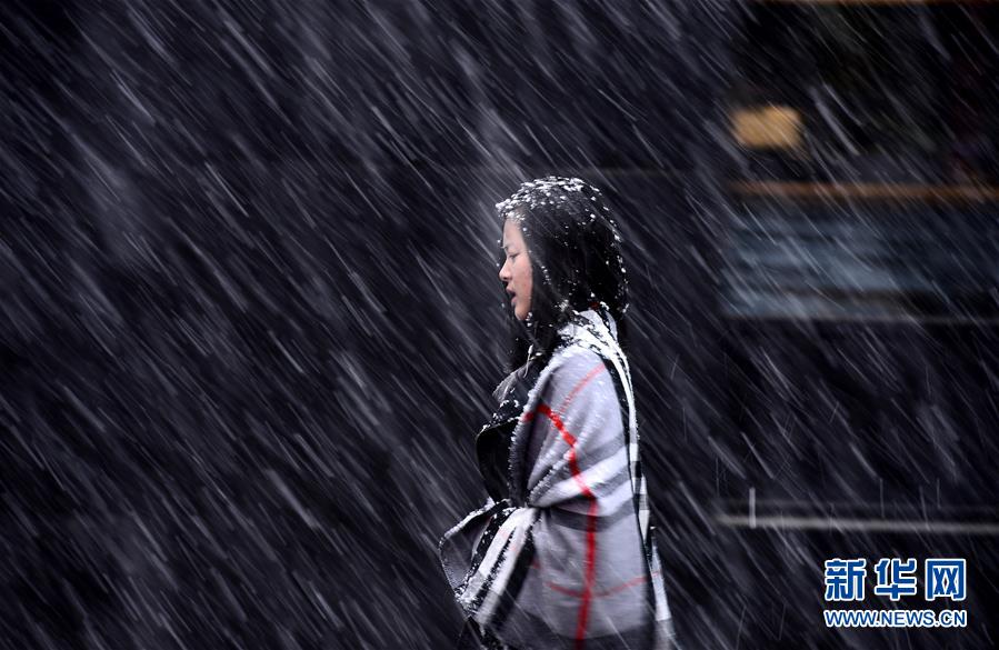 一位市民在西宁的街头冒雪行走。 新华社记者张宏祥摄 图片来源:新华网