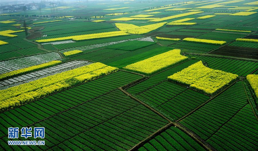 这是在城固县董家营乡拍摄的田野景色(3月24日摄)。初春时节,陕西省汉中市城固县8万多亩中草药元胡田地郁郁葱葱,与麦苗、油菜花等作物形成美丽春色。 新华社记者陶明摄