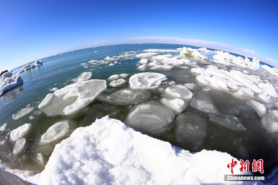 3月24日,青海湖湖面上的“冰桥”。青海湖开湖分为“文开”和“武开”,2016年青海湖开湖属“文开”。“文开”是指封冻一冬的青海湖随周边气温升高,缓慢融化,而“武开”则为在猛烈季风下,湖面冰层破裂被相互挤压着推向岸边。气象资料显示2016年青海湖开始解冻日期较去年推迟27天,较历年开湖日期平均(2003~2015年)提前了8天。