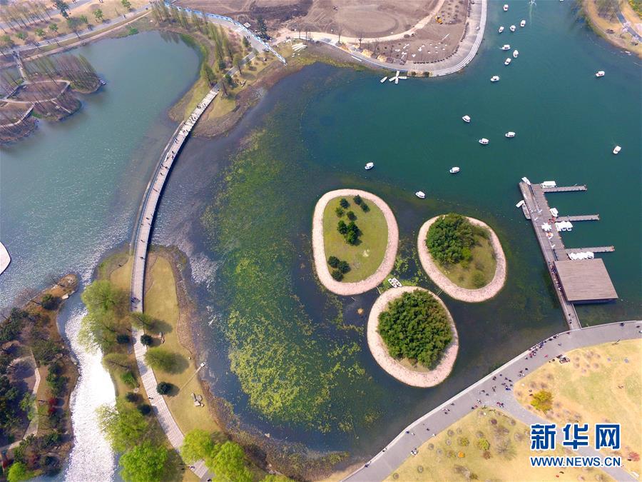 这是3月27日在上海辰山植物园上空拍摄的园内景象。三月,上海辰山植物园百花盛开,吸引众多游客前来踏青赏花。 新华社记者 张建松 摄