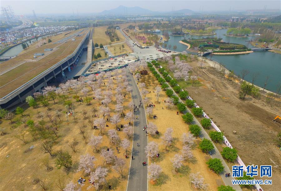 这是3月27日在上海辰山植物园上空拍摄的江南春天景象。三月,上海辰山植物园百花盛开,吸引众多游客前来踏青赏花。 新华社记者 张建松 摄