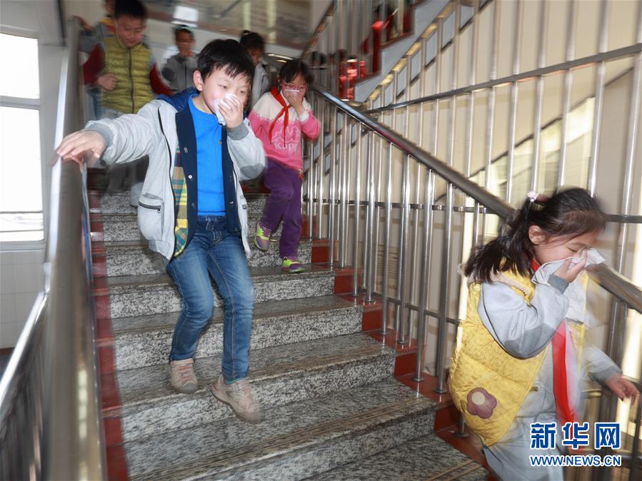 3月28日,学生在消防疏散演练中撤离教学楼。当日是全国中小学生安全教育日,江苏省无锡市扬名中心小学在校园内举行消防疏散演练,以提高学生的消防疏散技能。 新华社发(汤毅 摄)