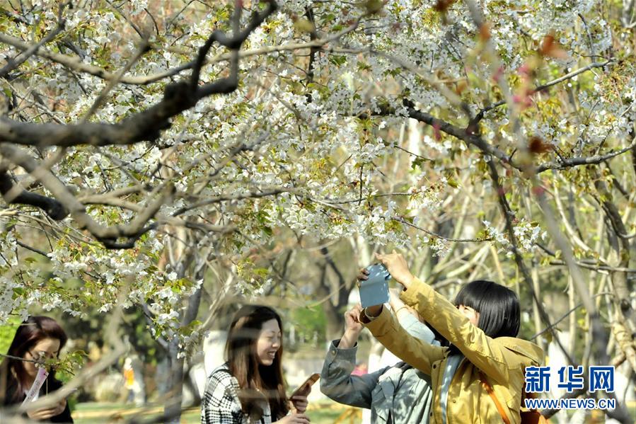 3月27日,游客在济南五龙潭公园举办的樱花节上拍摄。近日,济南市五龙潭公园举办一年一度的樱花节,园内开展的“赏樱花、观名泉”游园活动,吸引各地游客。 新华社记者 冯杰 摄