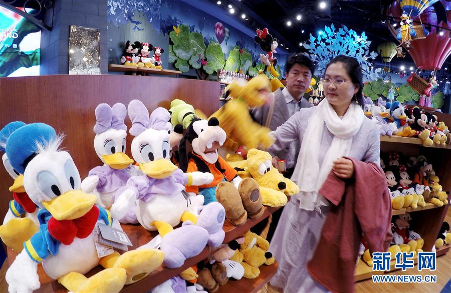 3月28日,顾客在位于上海浦东陆家嘴的迪士尼商品官方旗舰店内挑选毛绒玩偶。当日,上海迪士尼乐园开始向公众发售门票,门票分为平日票和高峰日票两种,平日票370元,高峰日票499元。据悉,上海迪士尼度假区将于6月16日开幕。新华社记者 方喆 摄