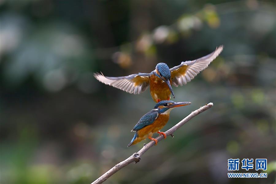 3月28日,在江苏省常州市红梅公园,一对翠鸟在枝头上演春日里的爱情故事。新华社发(周海军 摄)