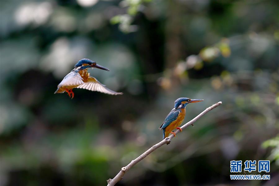 3月28日,在江苏省常州市红梅公园,一对翠鸟在枝头上演春日里的爱情故事。新华社发(周海军 摄)