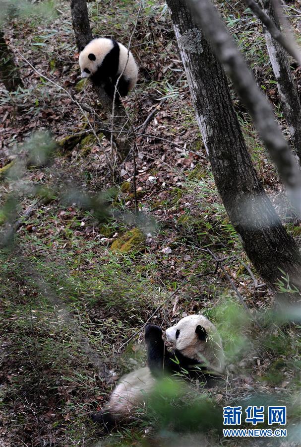 3月28日,一对野生大熊猫在佛坪县岳坝镇大古坪村活动。