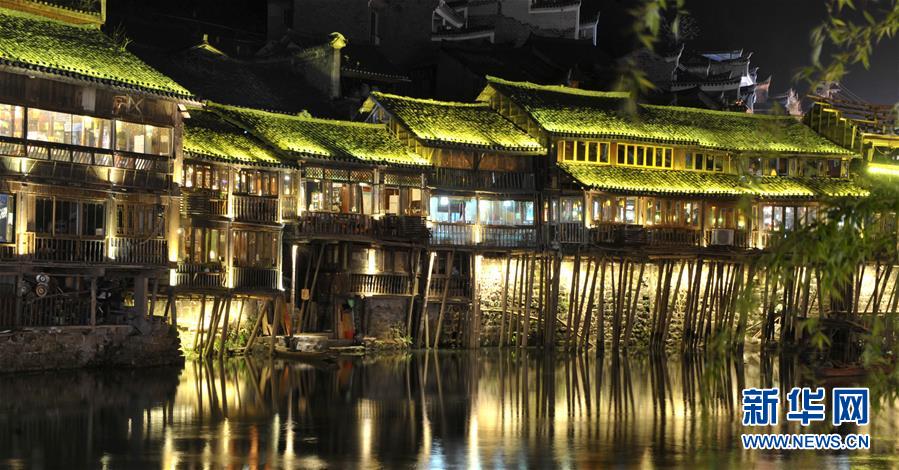 3月28日夜,旅游胜地湖南湘西凤凰古城彩灯齐放、霓虹闪烁,照亮沱江沿岸古城核心景区。据悉,湖南湘西凤凰古城沱江风光带夜景亮化工程于2011年正式启用,运用灯光的强弱、冷暖、色调和层次感,将古城的“山、水、城、人、文”等特点融为一体。2015年以来,当地政府强化了核心景区道路照明设施的维护并实施了亮化延伸工程,不断提升旅游形象。