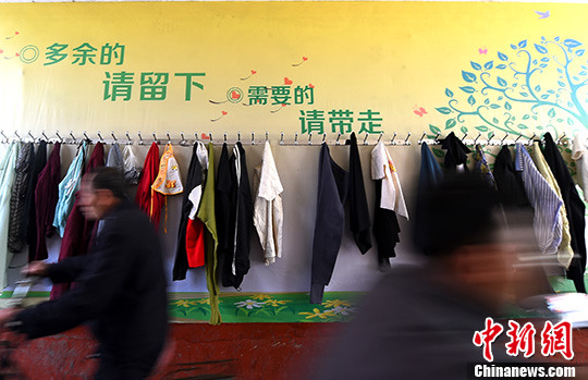太原“爱心墙”挂放闲置衣物再利用