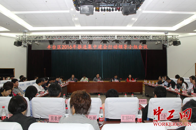 4月25日,丰台区总工会在丰台工人俱乐部四层召开“丰台区2016年推进集中建会行动领导小组会议”,会议由区总工会主席王建斌同志主持。会上传达了区委常委会杨艺文书记及相关领导指示精神;部署丰台区开展2016年推进集中建会行动、开展2016年职工之家建设工作、户外劳动者服务站点建设等三方面工作。来自区总工会各部室、22个街乡(园区)工会主席(副主席)、四个行业工会主席、五个相关协会负责人及工会专职工作者共100余人参加会议。