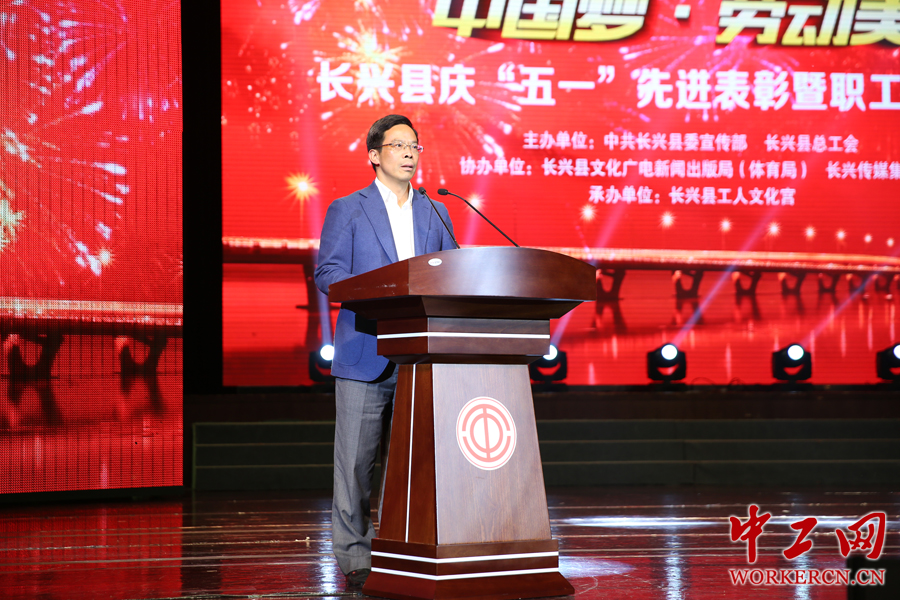 4月28日晚,长兴县庆“五一”先进表彰暨“中国梦·劳动美”职工文艺演出在长兴大剧院举行。湖州市政协副主席、总工会主席钟鸣,长兴县四套主要领导和分管、联系工会的县领导与1000多名职工共迎劳动者的节日。县委书记吕志良从弘扬主旋律,当好主力军,强化主心骨三方面对各级工会和广大职工寄予了厚望。