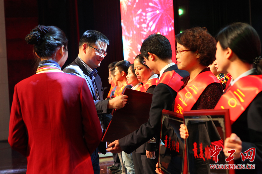 晚会期间,还对获得2015年度长兴县工人先锋号、县优秀工会工作者、县最美班组、县最美工人等先进集体和个人进行了表彰。 (中工网通讯员 长兴县总工会/周功文)