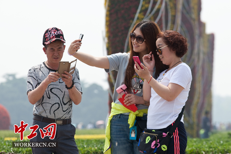 4月30日,2016年五一小长假第一天,北京天安门广场游客如织。拍照留念的游客也成为天安门广场的一道靓丽风景线。 中工网记者 李雪峰 摄