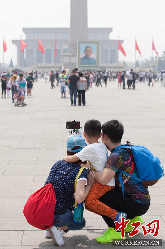 4月30日,2016年五一小长假第一天,北京天安门广场游客如织。拍照留念的游客也成为天安门广场的一道靓丽风景线。 中工网记者 李雪峰 摄