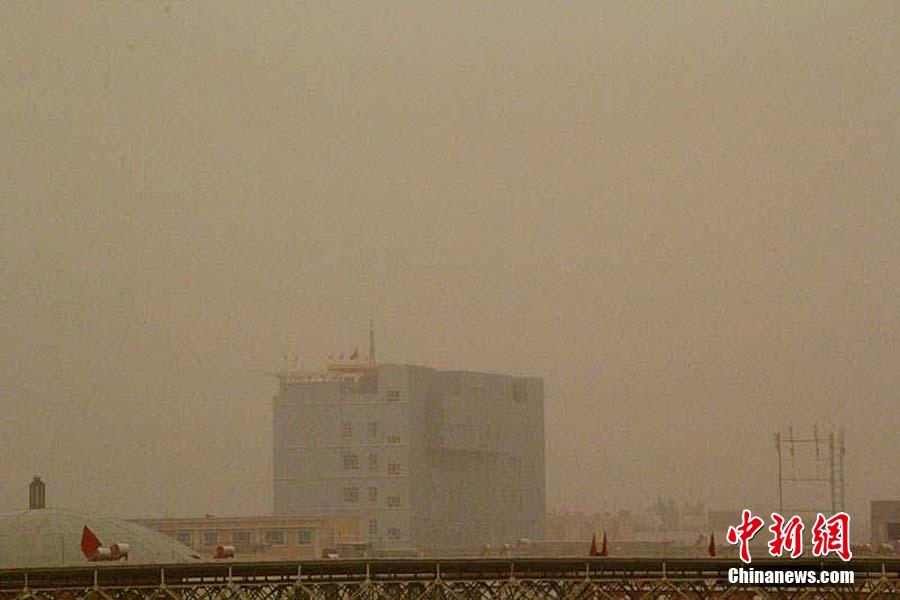 3日,记者看到岳普湖县城仍被沙尘笼罩,了解到克州阿图什市、喀什市、和田市等地浓浮尘天气持续。