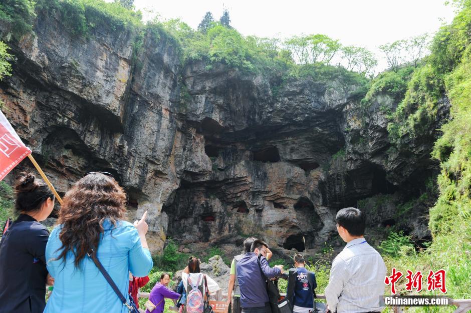 5月4日,游客参观数百年历史的矿洞遗址。当日,中国首个矿山怀旧小镇——朱砂古镇(万山国家矿山公园)在贵州万山开园,矿山博物馆、苏联专家楼、970公里的“地下长城”等景点向海内外游客开放。据了解,“五一”小长假期间,万山国家矿山公园(朱砂古镇)接待海内外游客近20万人次。 中新社记者 贺俊怡 摄