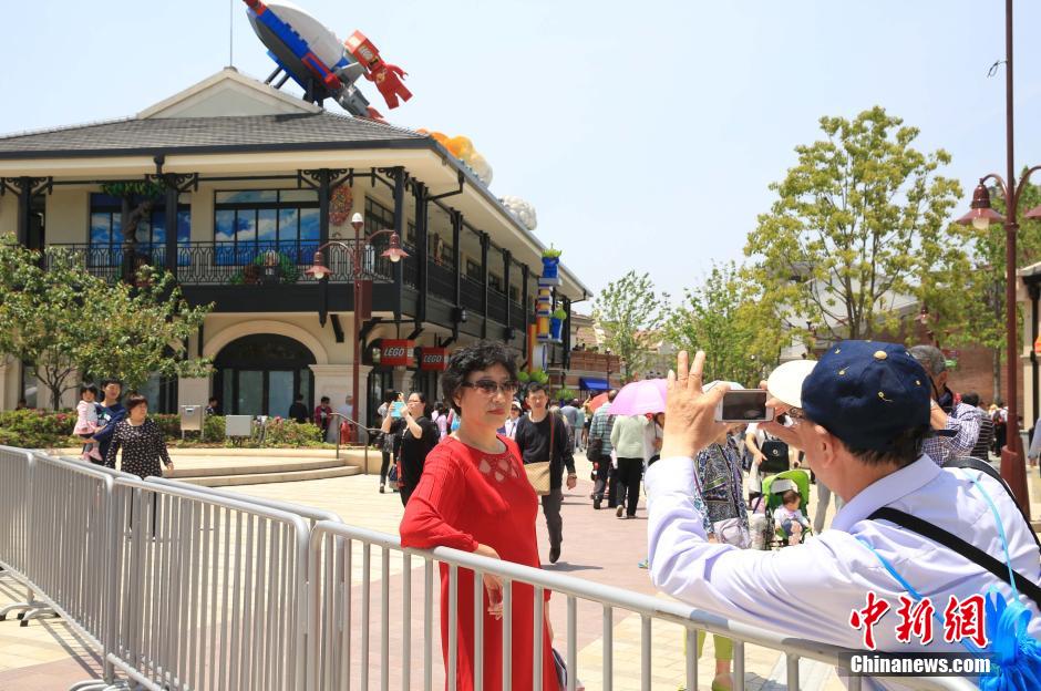 5月4日,上海迪士尼乐园试运行在即,许多“银发族”老年人抢先乐游上海迪士尼小镇以及星愿湖和公园,现场秩序井然。中新社记者 潘索菲 摄