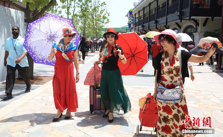 5月4日,上海迪士尼乐园试运行在即,许多“银发族”老年人抢先乐游上海迪士尼小镇以及星愿湖和公园,现场秩序井然。中新社记者 潘索菲 摄