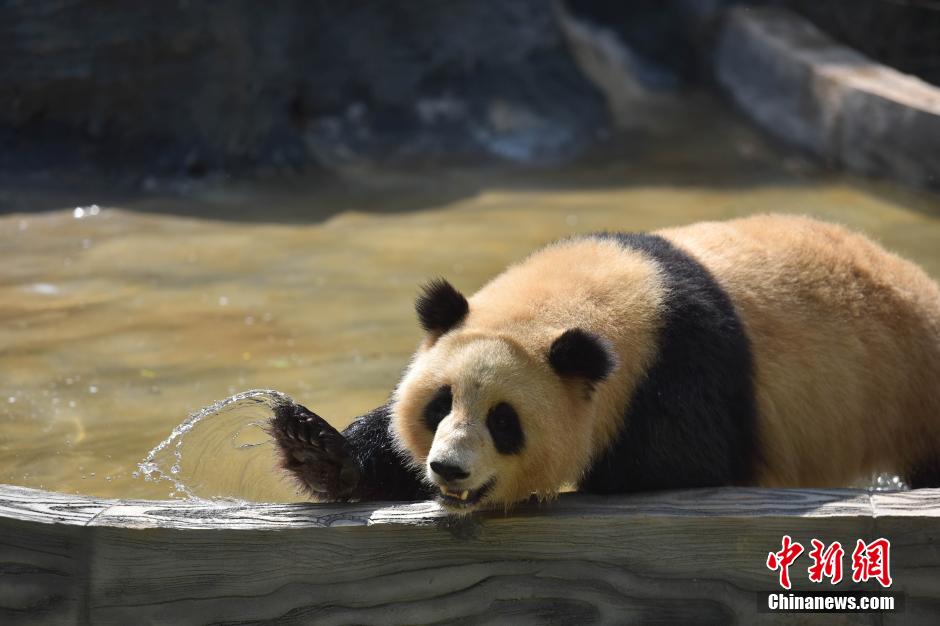 “春城”昆明迎立夏 大熊猫玩水消暑
