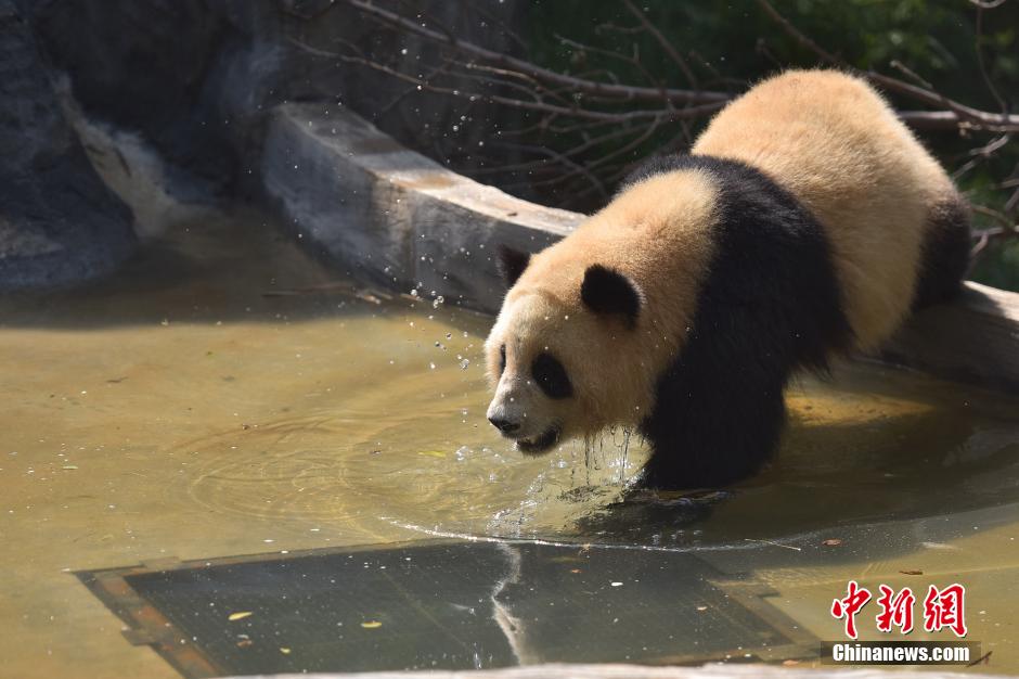 “春城”昆明迎立夏 大熊猫玩水消暑