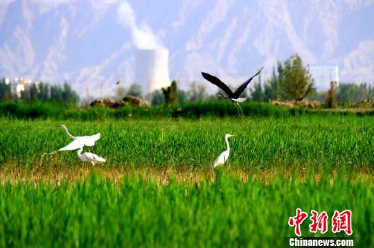 立夏时节甘肃河西走廊湿地公园白鹭飞