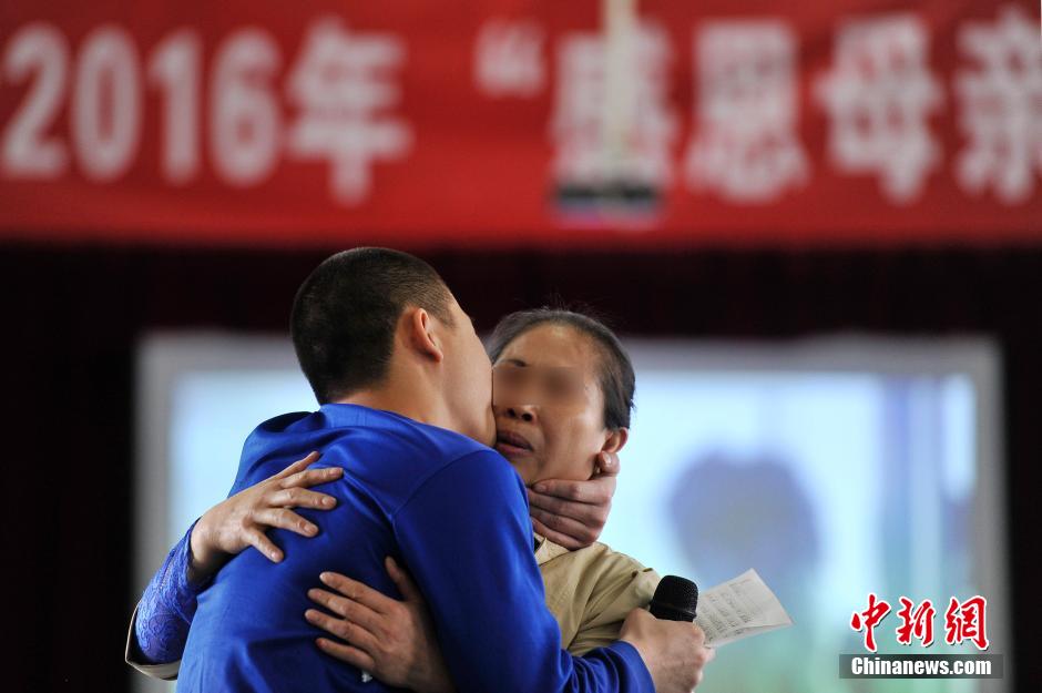 5月5日,在山西省强制隔离戒毒所,戒毒学员拥吻母亲表达忏悔与感恩之心。在“母亲节”即将到来之际,当地司法机关通过感恩教育活动,鼓励学员积极戒毒,早日回归社会。图为戒毒学员拥吻母亲表达忏悔与感恩之心。 韦亮 摄