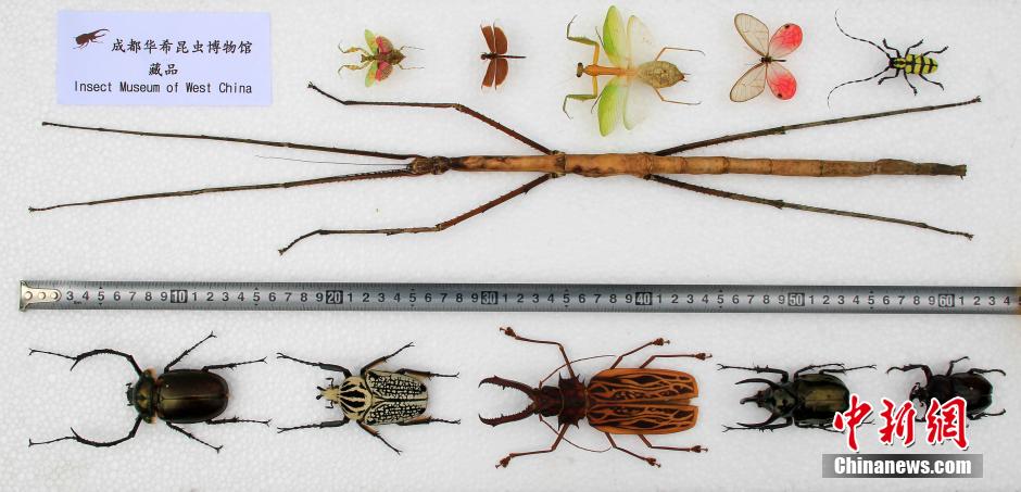5月6日,成都华希昆虫博物馆公布了发现昆虫新物种消息。此次公布发现的是一个竹节虫新物种——足全长62.4厘米的巨型竹节虫,身体长度也达到36.1厘米。刷新了世界上已经被人类发现的80余万种昆虫中的最长纪录。钟欣 摄