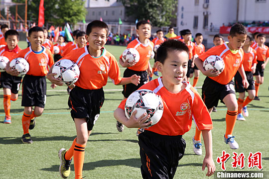 图为足球少年在开幕仪式上。中新社记者 韩海丹 摄