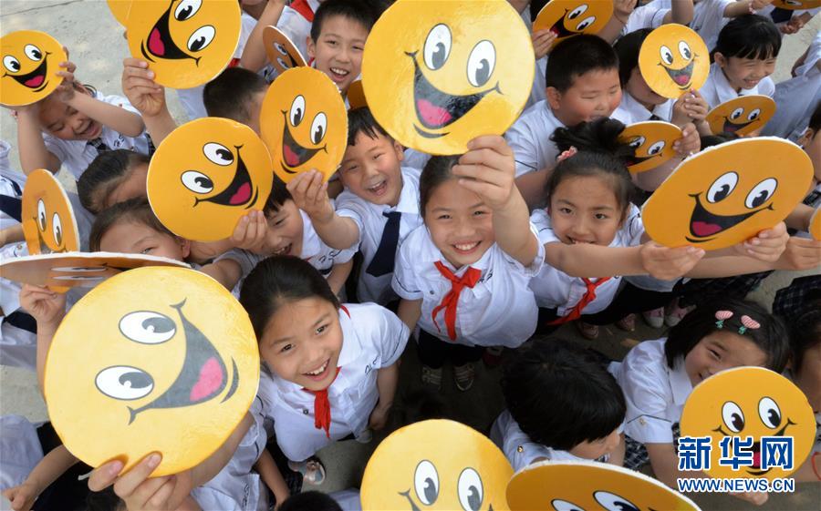 5月5日,河北省邯郸市邯山区滏河学校的学生们手举笑脸卡迎接“世界微笑日”。当日,河北省邯郸市邯山区滏河学校开展“微笑进校园,快乐每一天”活动,通过做微笑互动游戏、讲笑话、比笑脸等方式,培养学生们健康乐观的心态,用微笑迎接5月8日“世界微笑日”的到来。新华社发(郝群英 摄)