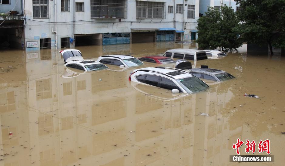 5月6日,暴风雨过后,地处湘南的永州市道县依旧内涝严重,许多民众正忙着抢修被洪水没顶的汽车。据气象部门预报,道县境内强降雨还将持续,当地也正在展开抢险、核灾和灾后自救工作。图为被洪水没顶的汽车。 通讯员 何红福 摄