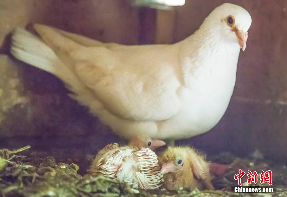 5月8日母亲节,重庆一主题公园公布了一组较为珍稀的野生动物亲子照。据悉,这些照片是从今年3月初开始收集拍摄,历时2个月的时间。照片里,与幼崽一起的动物“妈妈”,散发着浓浓的母爱。图为白鸽母子。 王成杰 摄