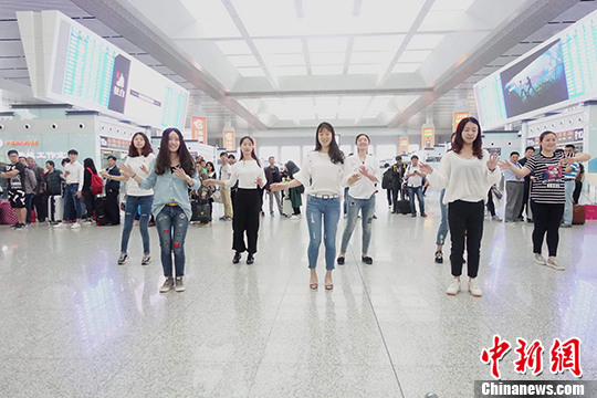 5月7日,工作人员在火车站上演一场母亲节快闪秀。当日,安徽合肥沁心湖社区与合肥南站综管办在火车站大厅上演一场母亲节快闪秀,为妈妈们送祝福。