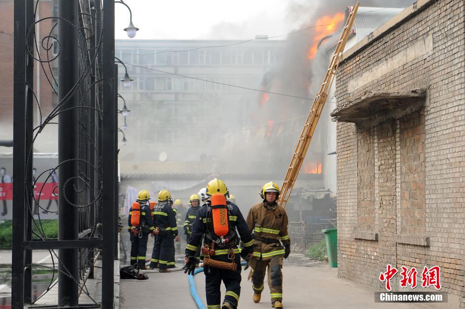 5月8日下午,山西太原西太堡街饮料厂宿舍附近一仓库发生火灾,当地消防支队迅速调集扑救力量赶赴现场施救。 中新社记者 武俊杰 摄