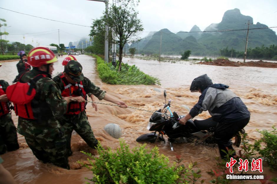 广西阳朔暴雨引发洪水 汽车遭没顶