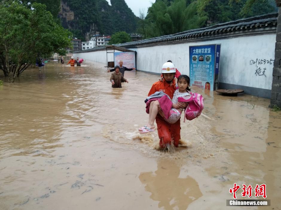 广西阳朔暴雨引发洪水 汽车遭没顶