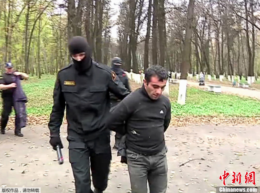 当地时间10月15日,俄罗斯警方在莫斯科州抓获了引发13日晚莫斯科南部骚乱的刑事案件嫌疑人奥尔汗·泽伊纳洛夫。图为由俄罗斯内务部公布的视频截图显示,莫斯科警方在莫斯科郊外的科洛姆纳(Kolomna)抓获了犯罪嫌疑人。