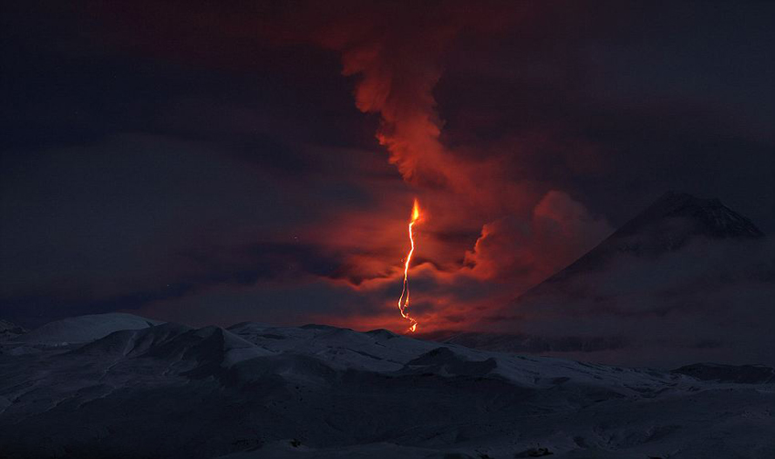 据英国《每日邮报》10月29日报道,英国摄影师理查德圠斯科(Richard Roscoe)为了拍摄位于俄罗斯勘察加半岛上的舍维留奇火山(Shiveluch)和克柳切夫斯卡娅(Kliuchevskoi)火山喷发时的壮美场景,连续工作20个小时,不眠不休。