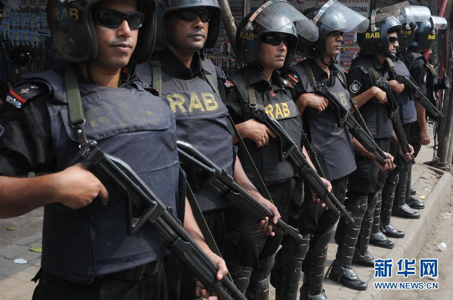 11月4日,在孟加拉国首都达卡,安全人员在示威现场警戒。当日,孟加拉民族主义党发起连续60小时不间断的全国大罢工,引发暴力冲突。目前已造成一名示威者死亡,包括警察在内的多人受伤。沙里夫·伊斯兰 摄