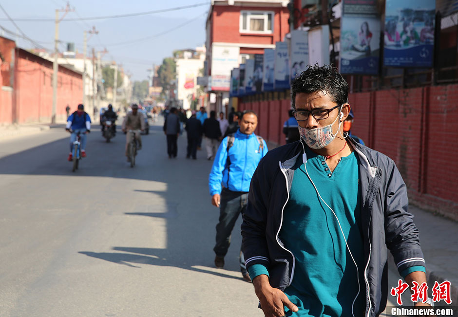 11月11日,尼泊尔警察在首都加德满都街头执勤,严阵以待防范暴力事件。随着11月19日尼泊尔制宪会议选举日益临近,该国反对党11日发起全国性“关闭”行动,学校停课、商店歇业、交通受限。期间,由于出租车及私人机动车被禁止行驶,许多民众被迫徒步出行。尼泊尔反对党称,12日至19日将继续关闭公共交通,以此抵制大选。中新社发 符永康 摄