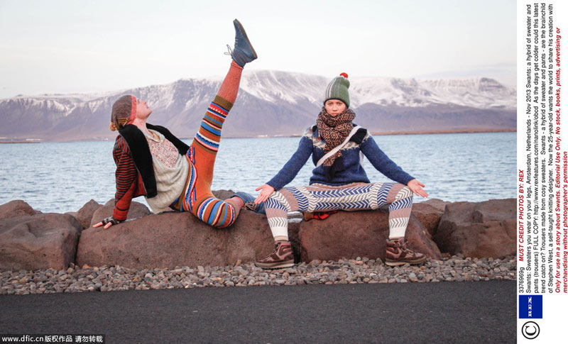 当地时间2013年11月报道,编织艺术家Stephen West最近突发奇想,创造出冬季另类保暖品“毛裤”,千万不要以为这是我们平时冬季所穿的绒线裤或是保暖裤,这里的“毛裤”指的是将毛衣当成裤子来穿。虽然听起来有一些恶搞,可是“毛裤”穿出来的样子还是不错的。
