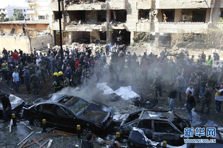 11月19日,在黎巴嫩贝鲁特伊朗大使馆附近,警察和救援人员在爆炸现场工作。位于贝鲁特的伊朗驻黎巴嫩大使馆附近19日上午发生两起爆炸事件,目前已造成至少10人死亡、50多人受伤。科卡 摄