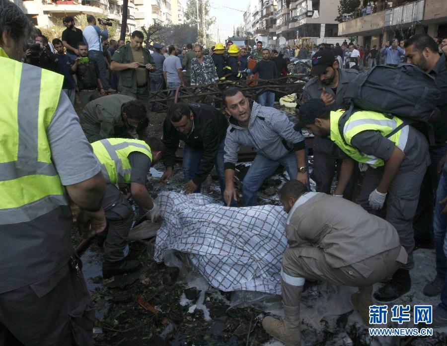 11月19日,在黎巴嫩贝鲁特伊朗大使馆附近,救援人员在爆炸现场工作。科卡 摄