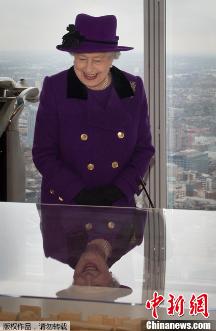 当地时间11月21日,英国伦敦,英国女王伊丽莎白二世和丈夫菲利普亲王,在素有欧洲第一高楼美称的伦敦“碎片大厦”观景台欣赏了伦敦的美景。