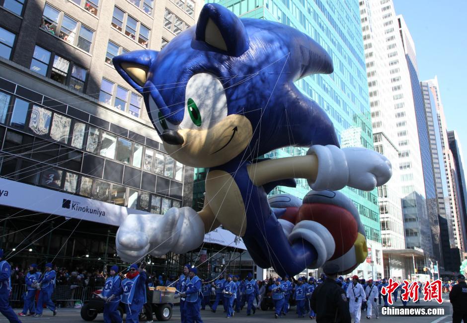 11月28日,纽约举行梅西感恩节大游行,今年预计有超过350万人将在纽约曼哈顿沿途现场观看,更有高达5000万将在家里看游行的电视转播。梅西感恩节大游行是全美感恩节最大规模的庆祝活动。该活动始于1924年,于每年感恩节(11月的第四个星期四)当天举行。中新社发 阮煜琳 摄