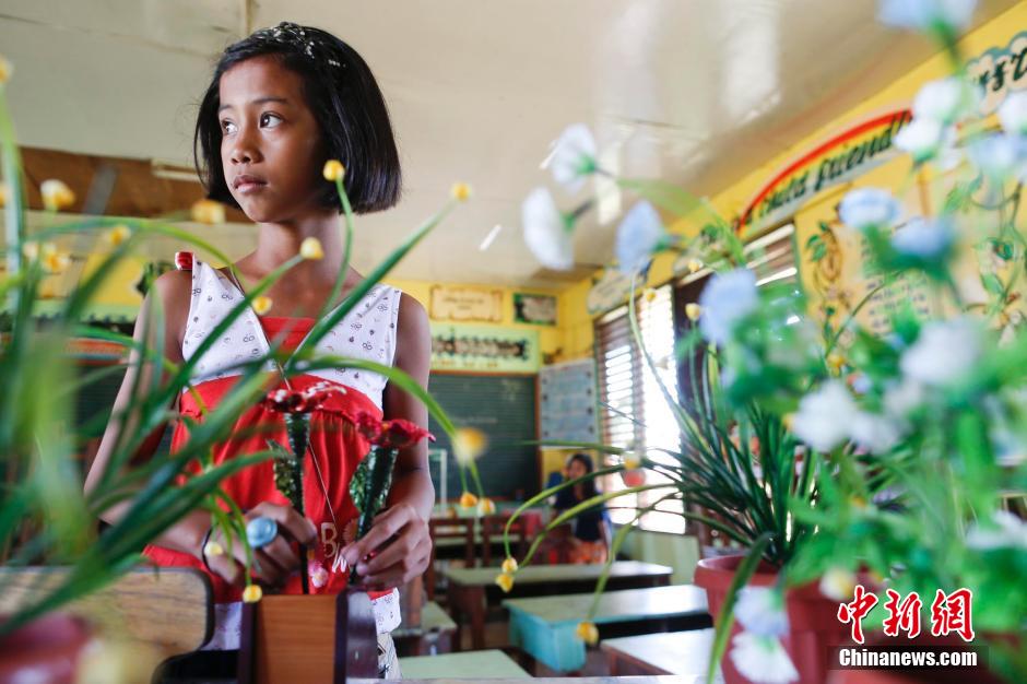 12月2日,台风“海燕”重灾区菲律宾莱特省一个名叫VILLA DE SAN JUANICO BAGAKAY的小村里,小学生Rodneart L.Jayme在教室里打扫卫生,迎接复课。当日,莱特省损坏不太严重的公立学校陆续复课。中新社发 刘关关 摄