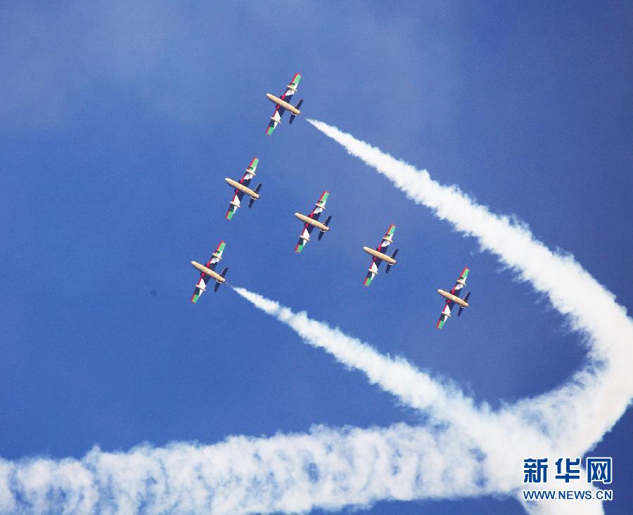 12月2日,在阿联酋首都阿布扎比举行的国庆庆典上,阿联酋空军“骑士”飞行表演队在做飞行表演。当日,阿联酋联合酋长国(阿联酋)武装部队在首都阿布扎比海滨大道举行军事力量展示活动,庆祝阿联酋建国42周年。 新华社记者安江摄